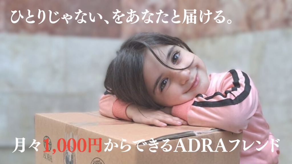 ADRA(アドラ)は世界約120か国に支部を持つ世界最大規模のNGOです。「ひとつの命から世界を変える」をモットーに、皆さまからの温かいご支援のもと、紛争・災害被災地や途上国において一人ひとりに寄り添う活動に取り組んでいます。