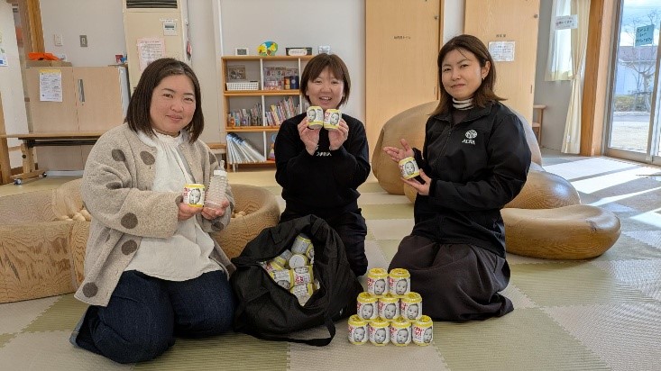子育て支援センター夢ふうせんさんには、ほ乳ボトルも寄贈いたしました。使い捨てタイプの軽い物なので、災害備蓄用だけではなく、断水時やお出かけの時にも使えます。