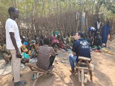 難民キャンプでの聞き取りの様子。
