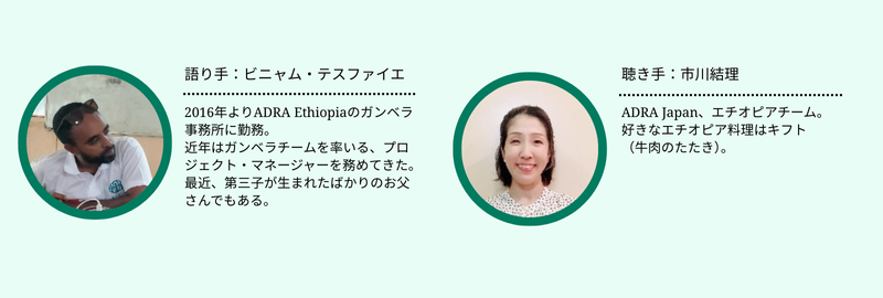 - (ビニャム)はい。生まれは北部のティグレイ州ですが、11歳のころに両親の仕事の都合でガンベラに越してきました。以来、ここで育ちました。
