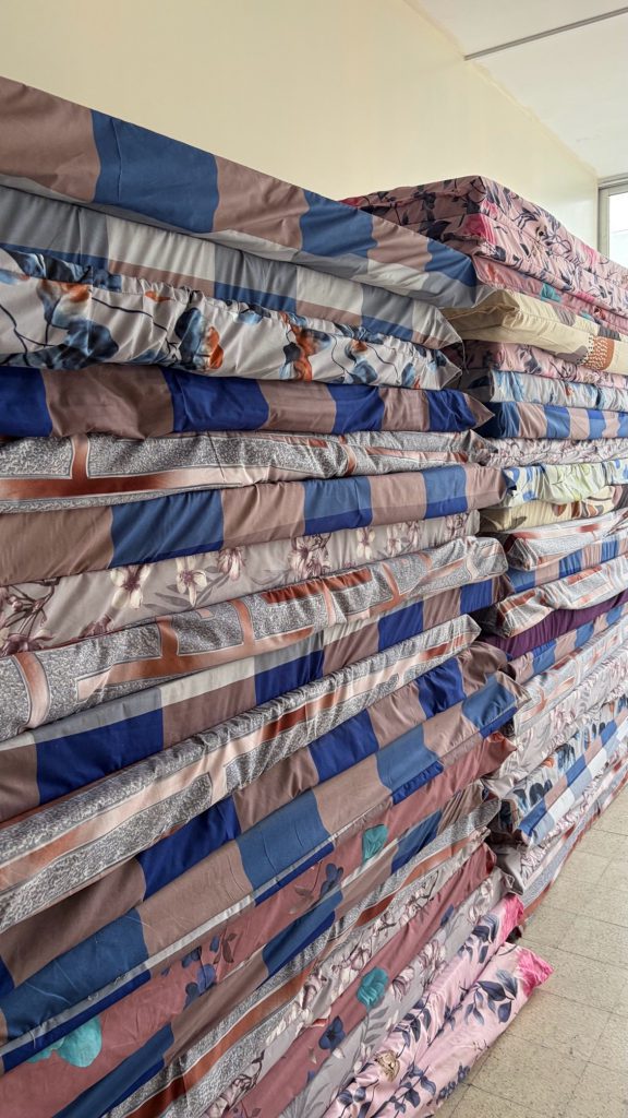 配付したマットレス(ベイルート郊外、2026年4月2日)