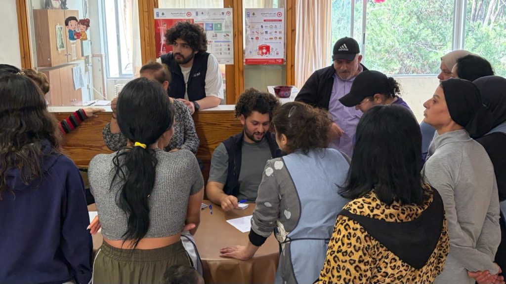 避難所で食料および衛生用品が購入できるバウチャー(金券)の配付を実施(ベイルート郊外 2026年4月17日)