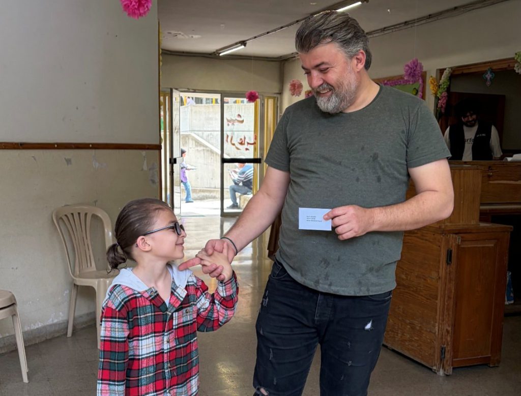 バウチャーを受け取った親子(ベイルート郊外 2026年4月17日)