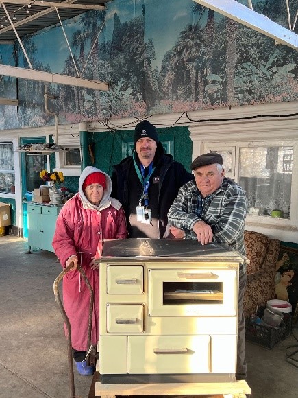 また、東部ドネツク州など、頻繁な停電の中、自宅にも被害を受けながら生活する世帯には調理機能付き薪ストーブを届け、人々が暖を取りながら食事を用意できるよう支援しました。