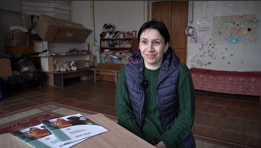 障がいを抱える家族と暮らすスタロドゥベツさんは、夫婦共に障がいや持病を持ち、わずかな年金での生活が困難な中、現金給付支援を受けることで薬や生活必需品を購入できるようになったと語ります。「支援を受けて本当に助かった。」と話す笑顔と感謝の言葉が印象的でした。
