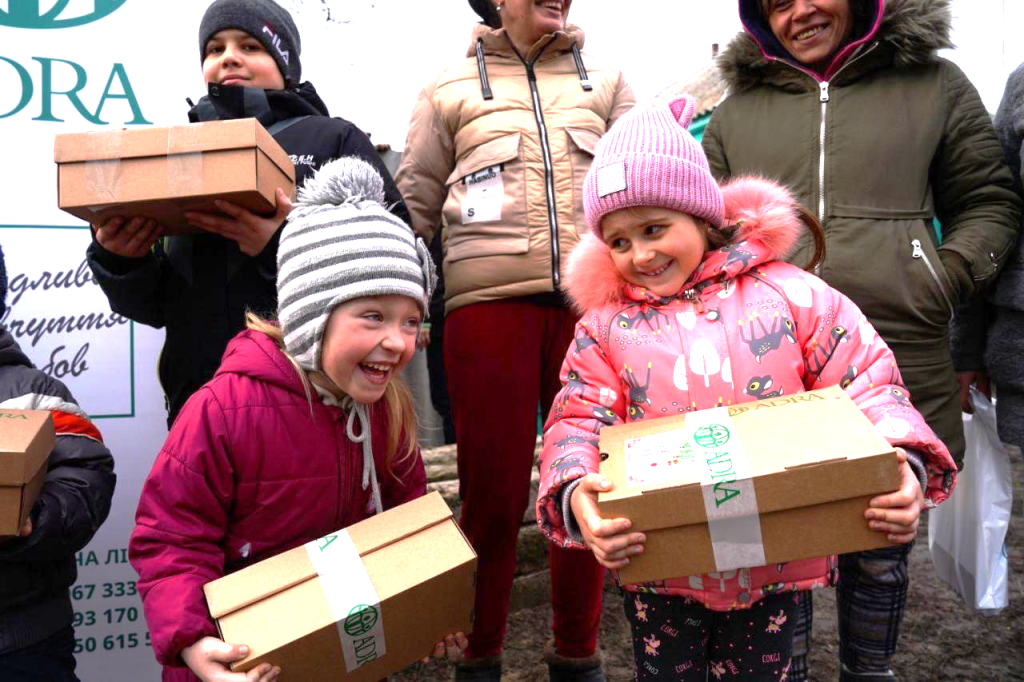 配付が実施された地域では、ADRAスタッフとボランティアにより、クリスマスギフトが子どもたち一人ひとりに手渡されました。たとえ戦争の困難な状況下でも、笑顔と希望を感じられるひとときとしてギフトを受け取った家庭から喜びの声が届きました。